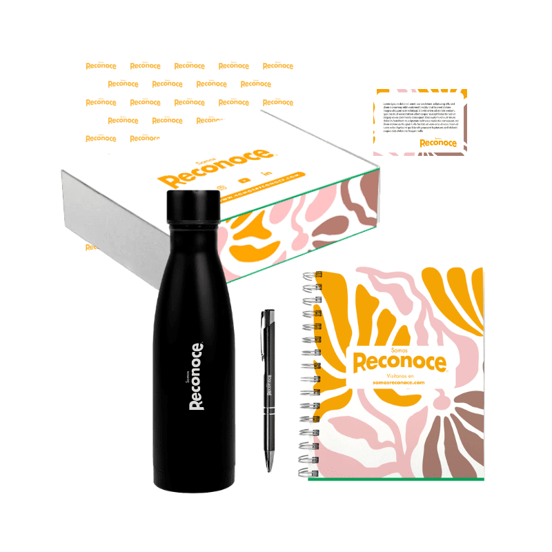 Cuaderno Personalizado full color de medidas 16,5 x 21 cm doble anillado metálico, 100 hojas interior con logotipo a un color, más 4 planas full color con información corporativa. Incluye Diseño