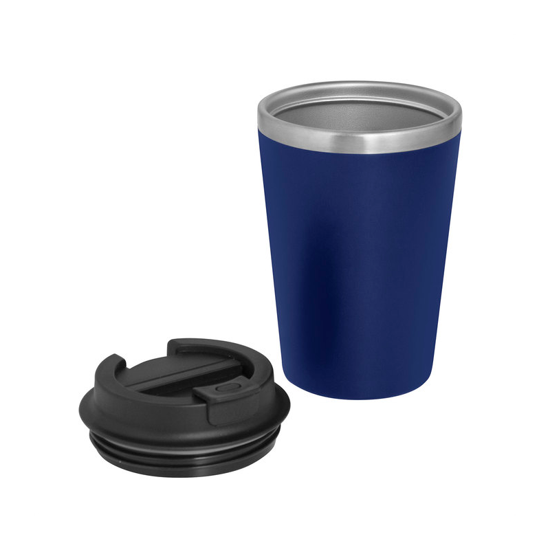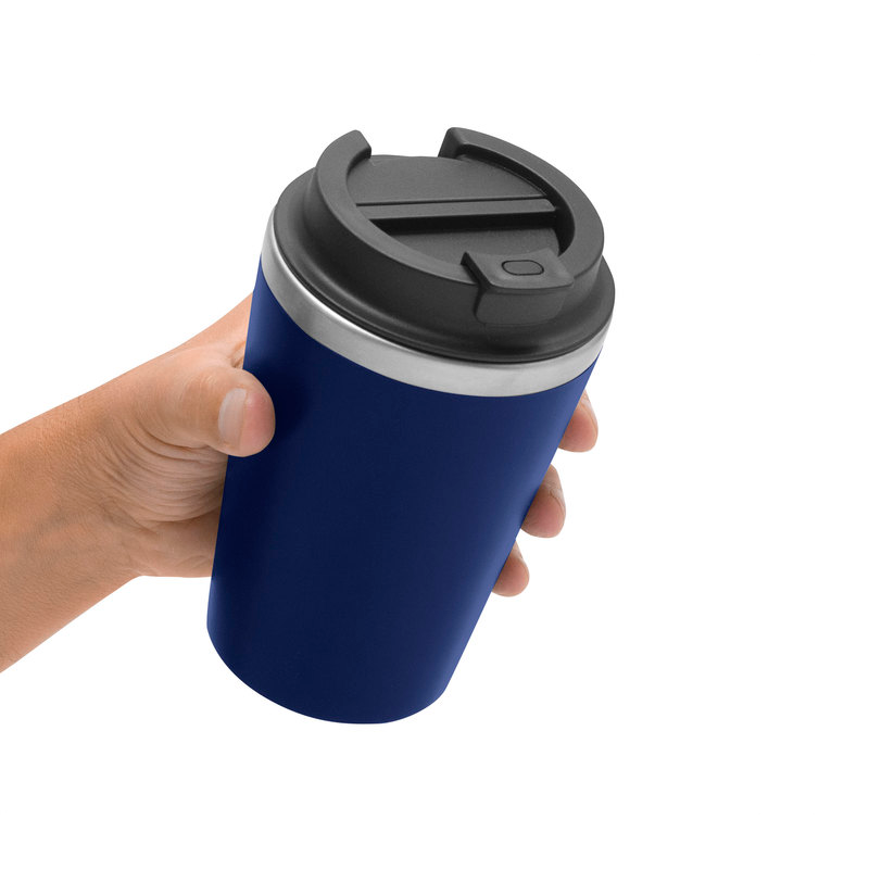 Mug doble pared :Interior de acero inoxidable 304 y exterior de PP con acabado mate Polipropileno.