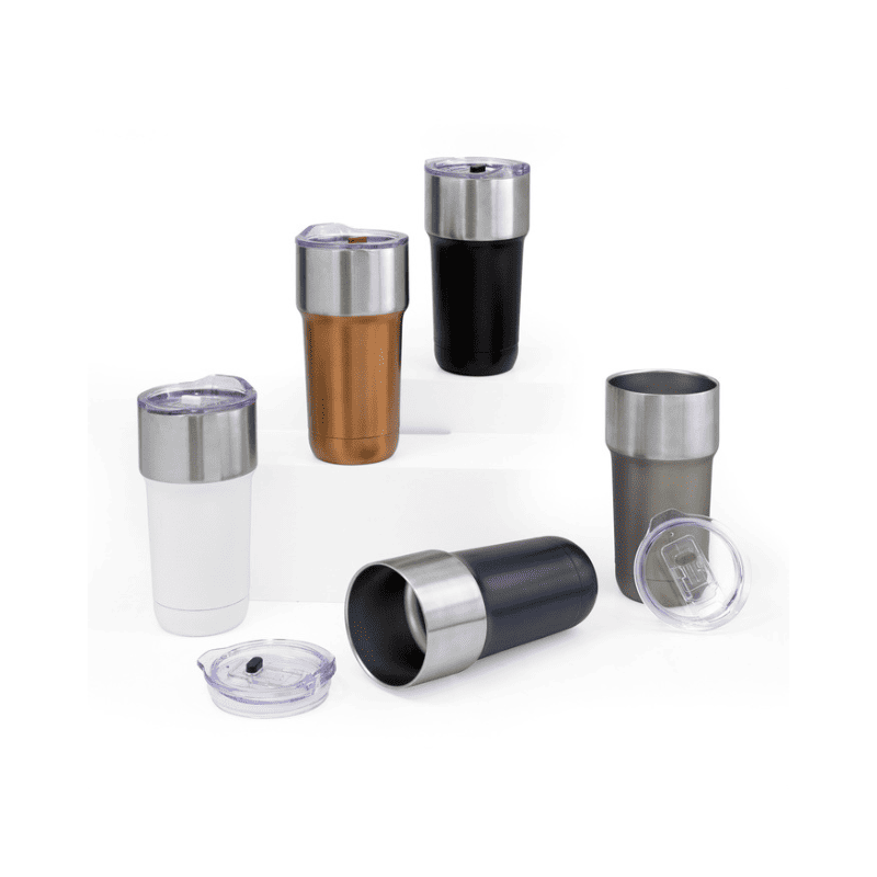 Mug con aislamiento térmico, doble pared, sellado al vacío. Personalizado con logo. Interior y exterior en acero . Tapa de poliestireno con anillo de silicona y detalles en color en juego con el cuerpo, parte superior en acero inoxidable. Mantiene hasta 12 hs la temperatura de las bebidas calientes y 24 hs de las bebidas frías.