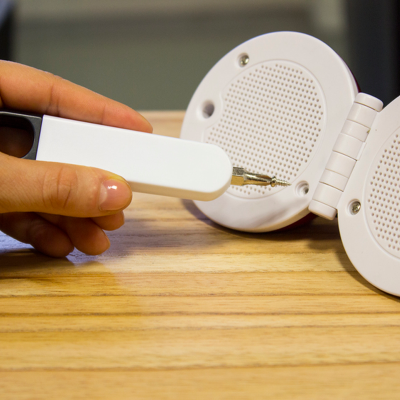 Contiene destornillador con 4 puntas intercambiables que se guardan en el interior. El extremo de la tapa es imantado para el ajuste de las puntas.