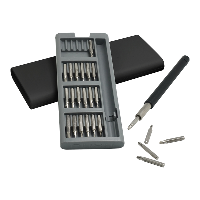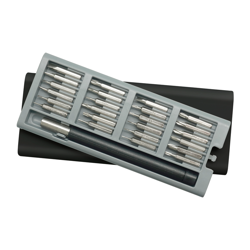 Set de plástico y acero. Mango con punta imantada con 24 puntas diferentes.