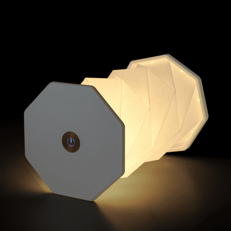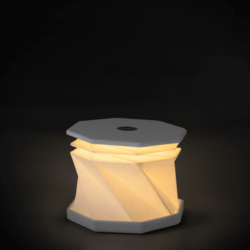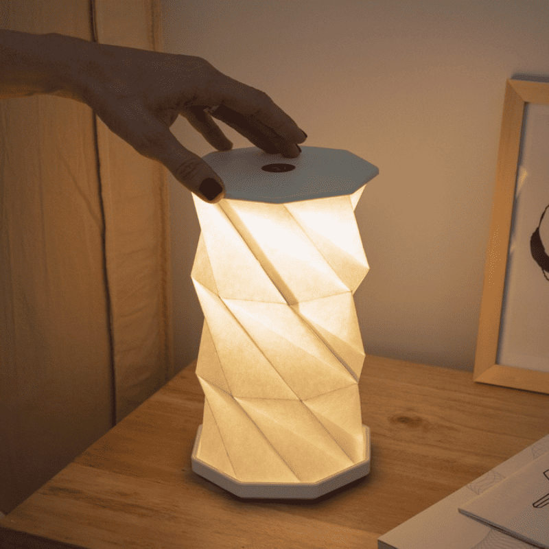 Lámpara giratoria plegable. Permite 3 posiciones de diferentes alturas. Luz led cálida. Botón táctil de encendido/apagado que regula la intensidad de la luz. Batería de litio recargable. Conexión USB-C. Incluye cable de carga de 1 m. de largo color blanco. Personalizada con logo