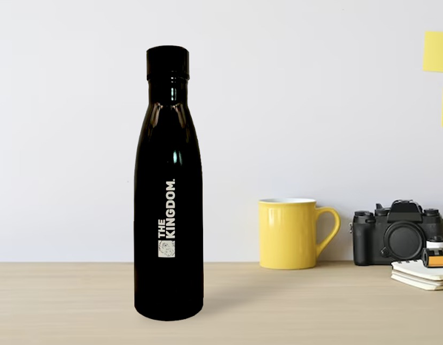 Botella Acero inoxidable, Doble pared color negro, capacidad 500 ml, con logotipo grabado